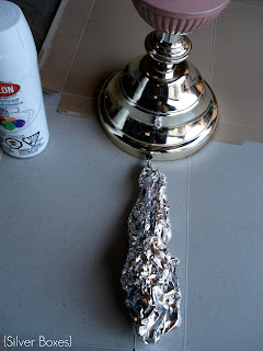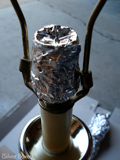 Then I wrapped the cord & the light socket with aluminum foil before starting to spray.